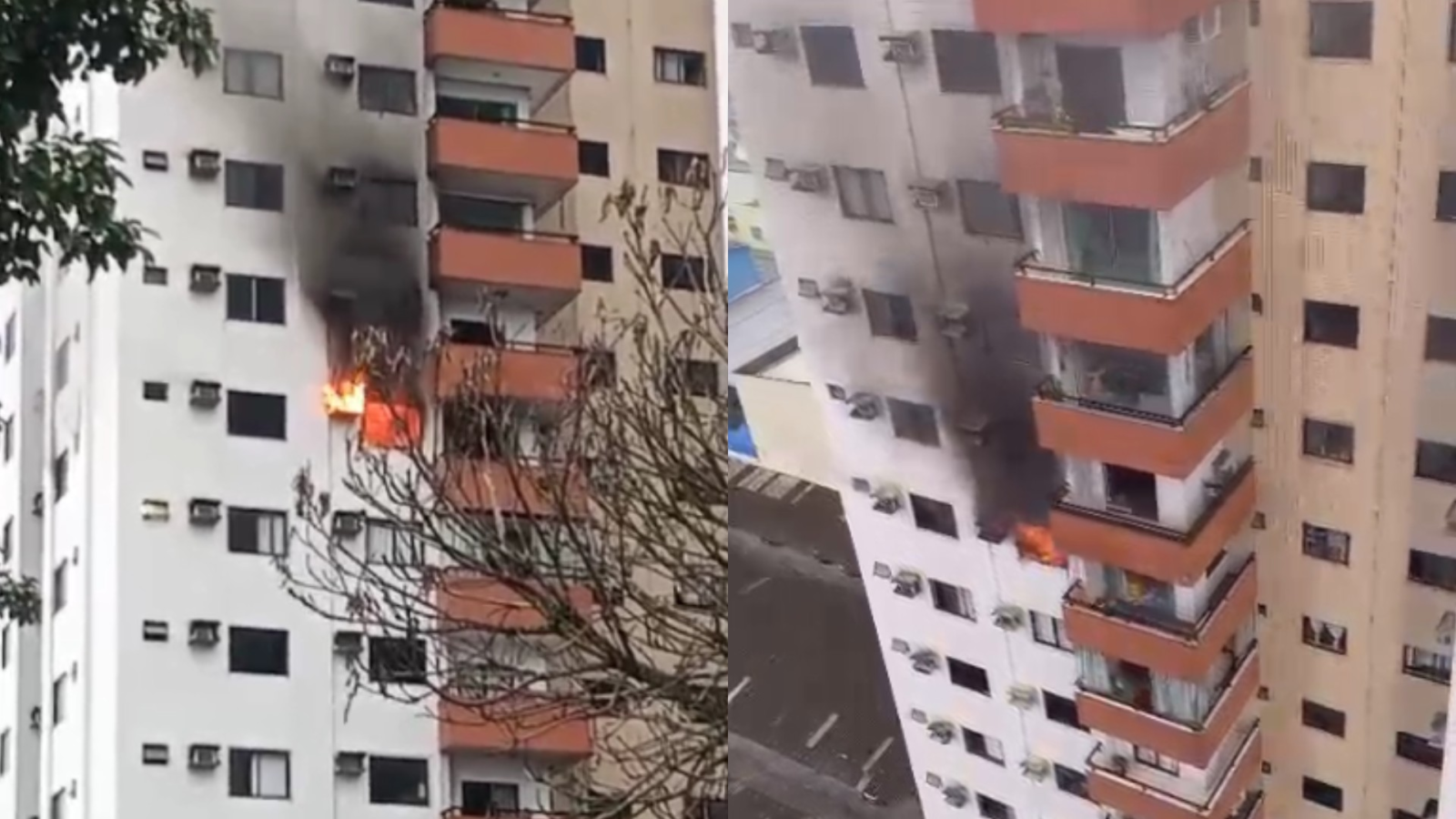 Além disso, o Corpo de Bombeiros foi acionado, e uma equipe da corporação se dirigiu ao local. Os agentes tentam controlar as chamas e a fumaça alta e forte que sai de uma das janelas do apartamento.