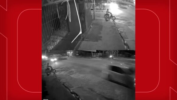 As imagens mostram que o motociclista estava parado no canto da avenida Tropical, aguardando a passagem de um carro pela Dom Frederico, quando...