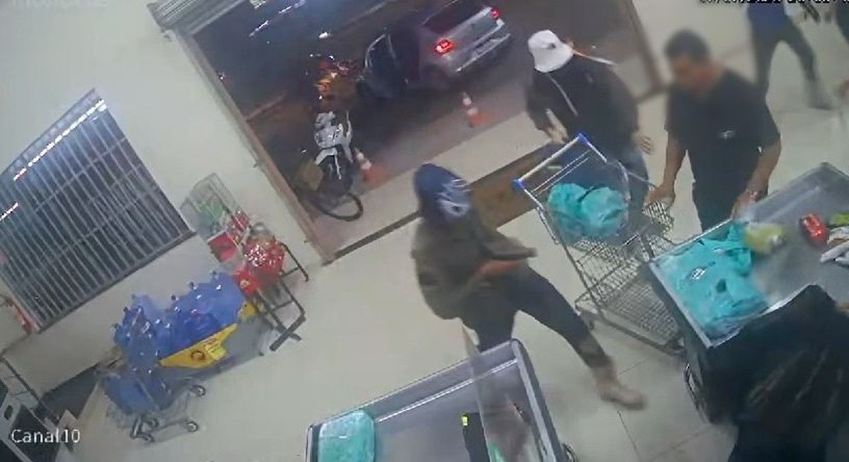 A ação foi registrada por câmeras de segurança do estabelecimento. Nas imagens, é possível ver quando ao menos oito homens armados entram no local. Os suspeitos chegam em motocicletas e também em um carro prata, um criminoso aguarda dentro do carro.