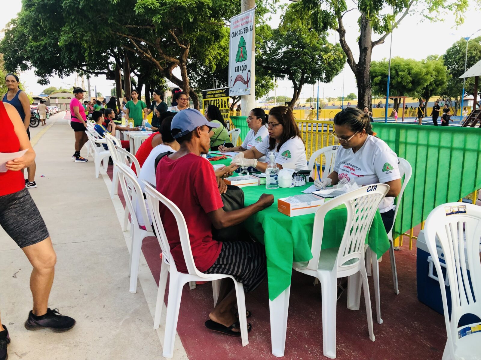 Entre os objetivos específicos estiveram a ampliação do acesso à testagem rápida para HIV, sífilis e hepatites virais; a sensibilização da população sobre formas de prevenção e tratamento; a redução do estigma e da discriminação; o fortalecimento do vínculo da comunidade com os serviços do CTA/SAE; além da ampliação das orientações sobre prevenção combinada, com destaque para a Profilaxia Pós-Exposição (PEP) e a Profilaxia Pré-Exposição (PrEP).