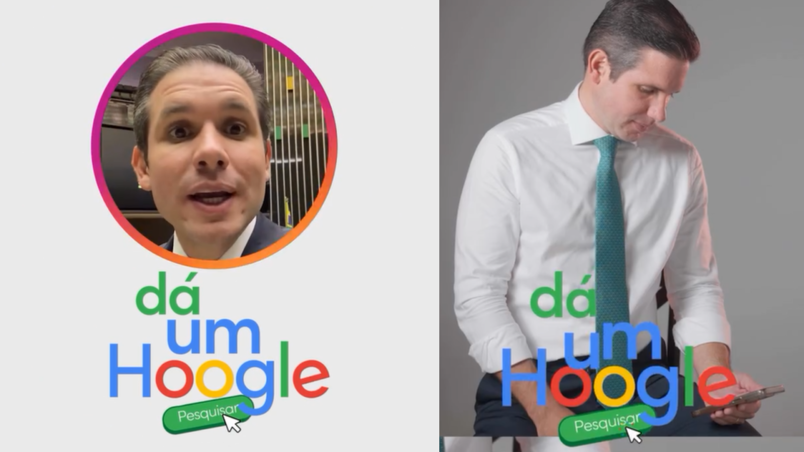 Além de abordar temas políticos, o presidente da Câmara tem se permitido um tom descontraído em suas postagens como a frase “Dá um Hoogle” — fazendo uma ligação ao Google com sua inicial.