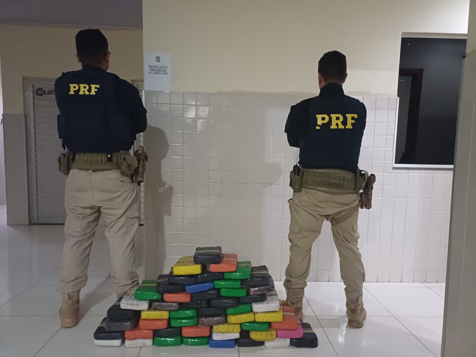 Segundo a PRF, na fiscalização foram encontrados 50 tabletes de maconha que totalizaram 54,395 kg. Condutor e passageiro do veículo utilitário informaram que a droga saiu da cidade de Santarém e teria como destino a cidade de Novo Progresso.