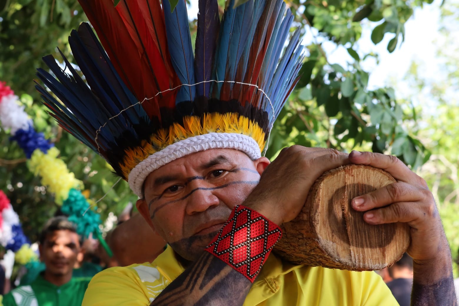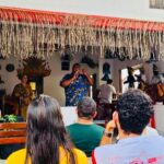 “O Rito Religioso tem a presença forte dos povos tradicionais, de ribeirinhos, quilombolas, indígena Boraris, todos com traços bem expressivos que vai da colocação dos mastros, as rezas e seus cantos de louvores, e na disputa dos botos os elementos sobrenaturais, as indumentária, as cores vibrantes e a presença dos povos tradicionais é evidente em cada cena apresentada em cada uma das telas”, explicou Baena.