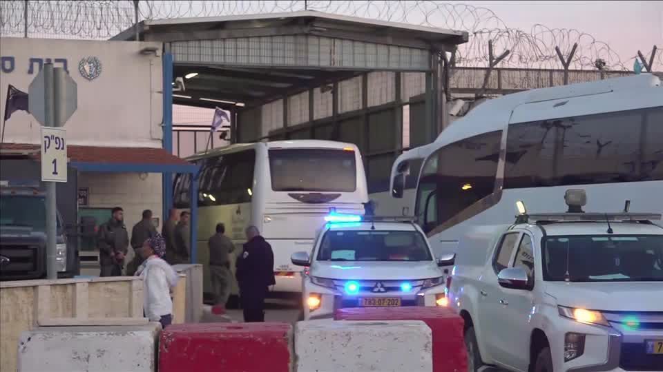 Ônibus que transportavam prisioneiros palestinos soltos da Prisão de Ofer na Cisjordânia ocupada foram recebidos por grandes multidões aplaudindo e agitando bandeiras, de acordo com uma equipe da CNN no local.