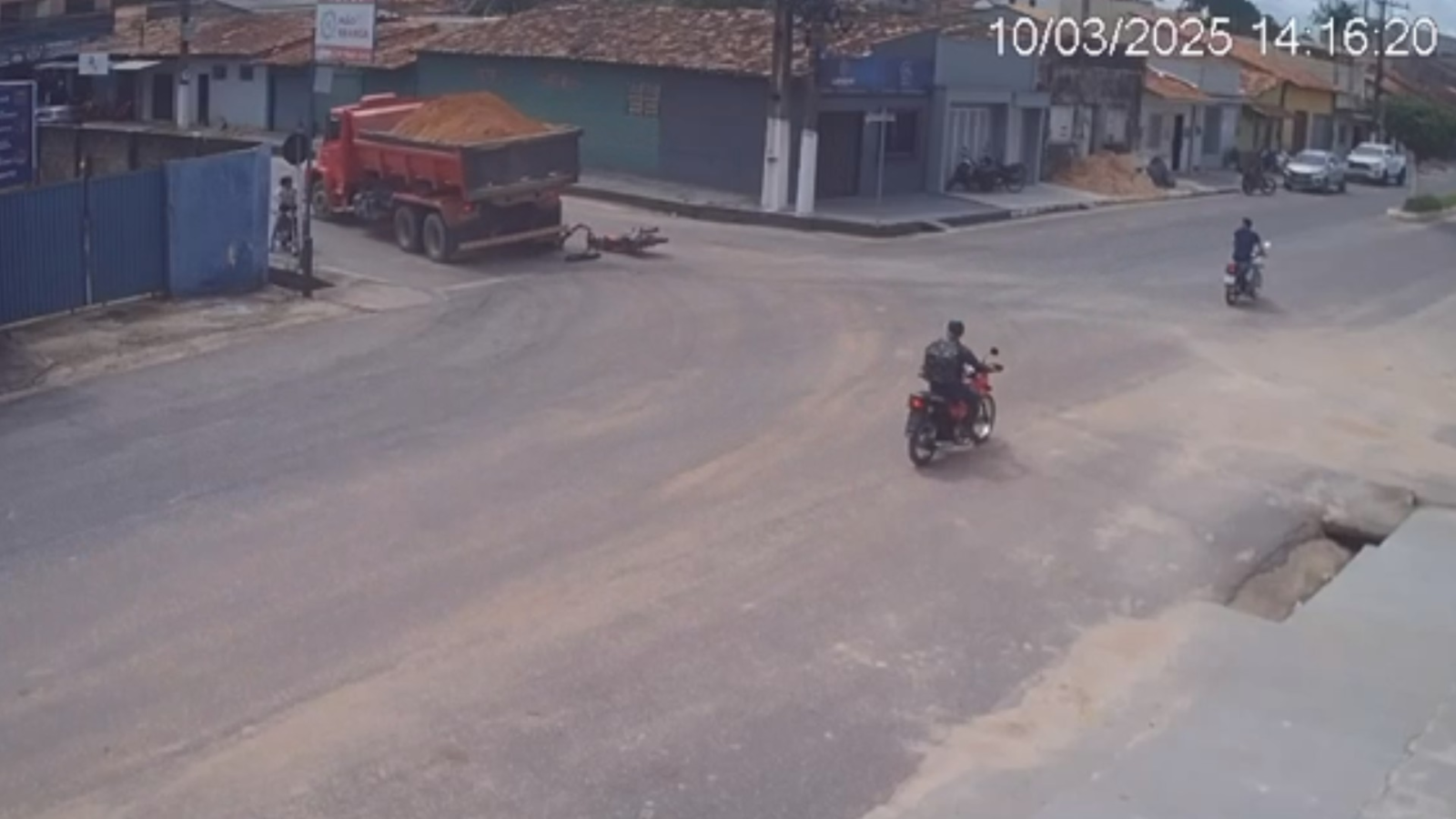 Pelas imagens é possível ver quando a vítima vem pela mesma pista que o caminhão, que dobra para entrar na outra avenida, momento em que a moto, que também entrava na via, colidiu contra o veículo maior. Reinaldo foi esmagado pelo caminhão e morreu no local.