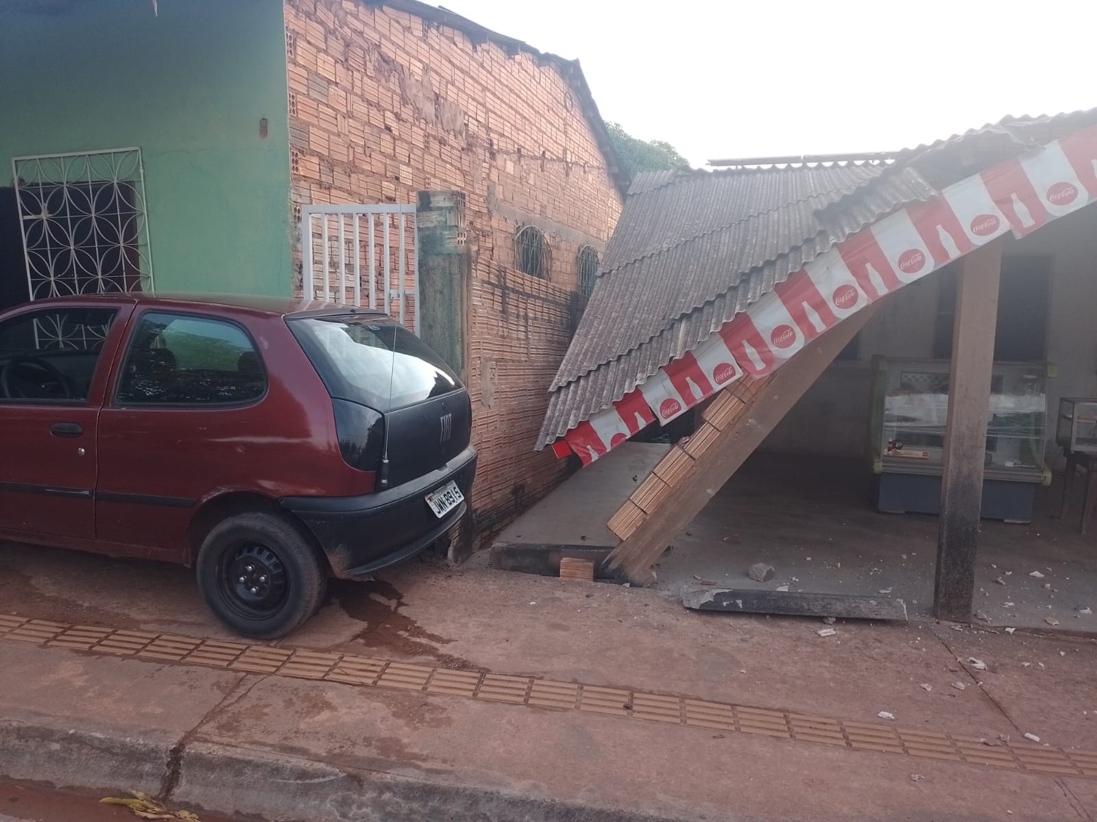 Com o impacto da batida, parte da estrutura do imóvel atingido ficou comprometida. Felizmente ninguém ficou ferido.