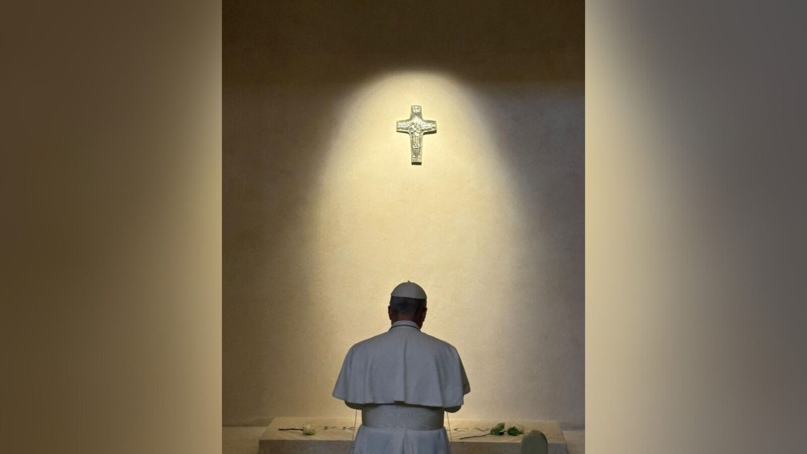 Leão acenou do lado do passageiro de um Volkswagen ao chegar à Basílica de Santa Maria Maior, em Roma. Entrando na igreja sob alguns gritos de “vida longa ao papa”, o pontífice caminhou lentamente até o túmulo de Francisco, depositando uma flor branca sobre ele.