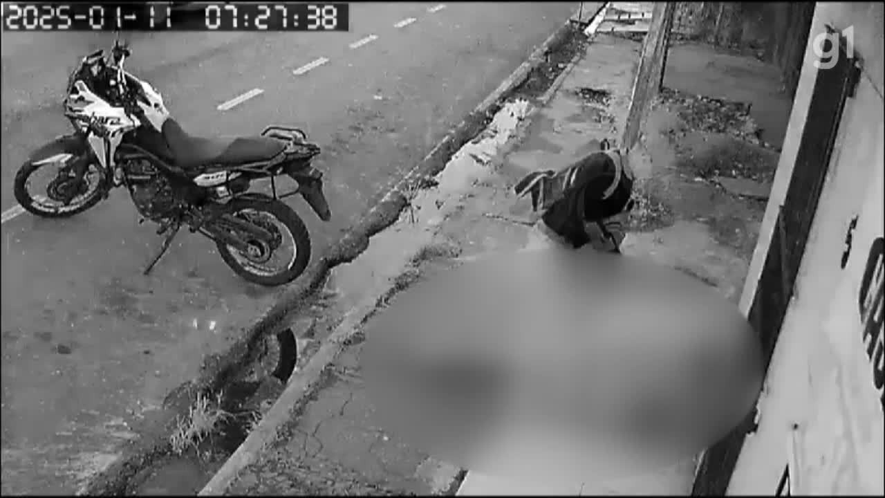 Imagens de uma câmera de monitoramento registraram a ação criminosa. A vítima estava em frente à uma casa, com uma mochila e um capacete.