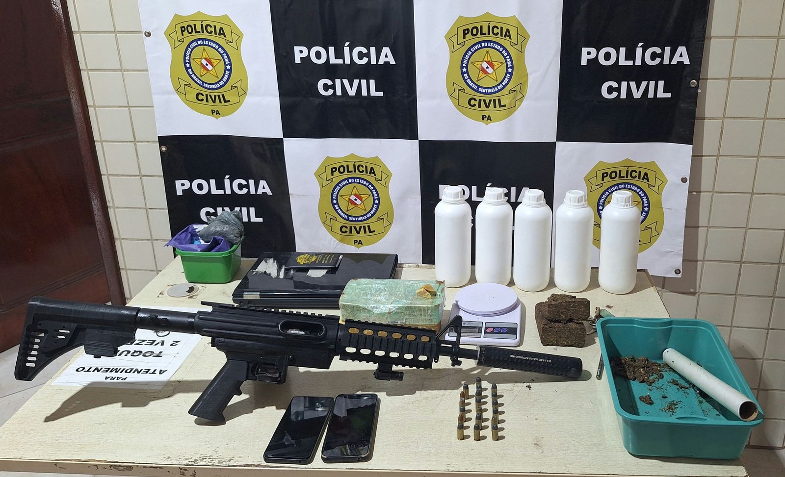 Em Castanhal, as investigações levaram os agentes da 12ª Seccional Urbana do município a encontrar as drogas e o armamento em imóveis utilizados pelo suspeito como apoio ao tráfico de drogas.