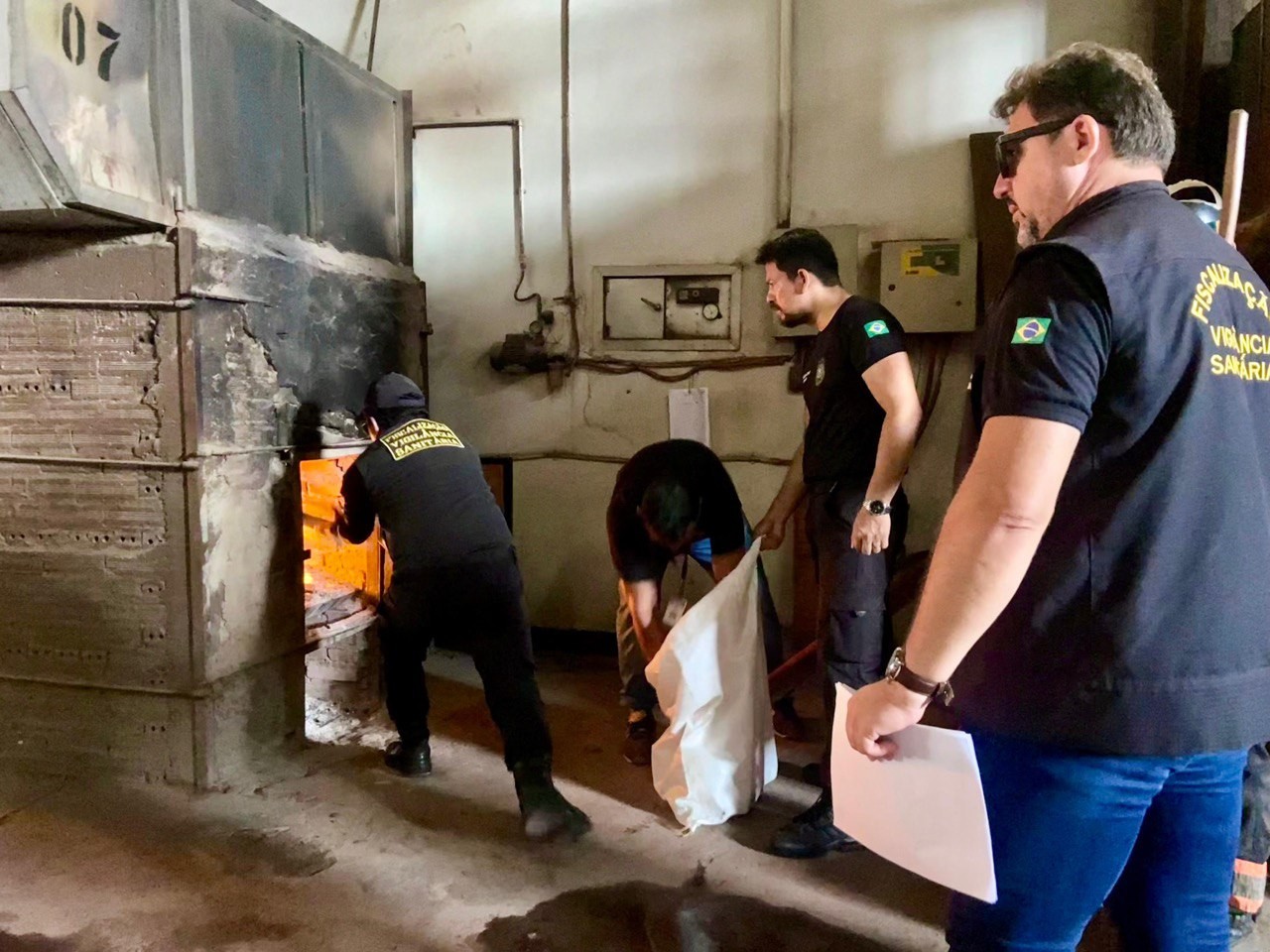 A incineração contou com a participação de várias instituições, incluindo o Ministério Público e a Vigilância Sanitária.
