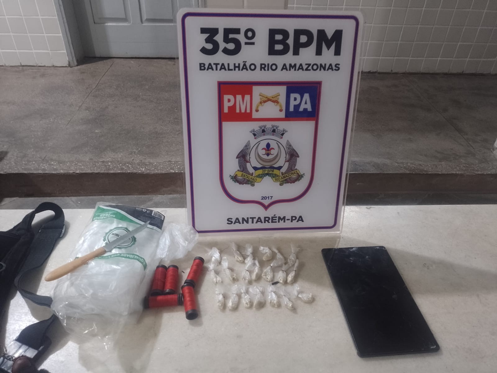Dois homens foram apresentados na 16ª Seccional Urbana de Santarém, oeste do Pará, na noite de sexta-feira (23) por uma guarnição da Polícia Militar, após serem flagrados na “Boca do Bolacha”, um ponto de venda de entorpecentes na Rua Nova, no bairro Nova República. No local, a polícia apreendeu 20 papelotes de Crack.