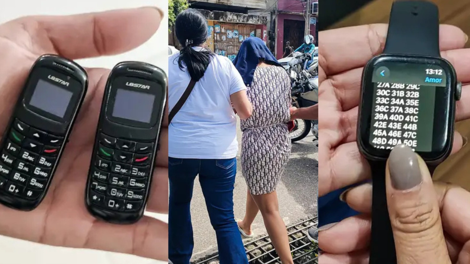 Durante a operação, além dos mini-celulares que dificultavam a detecção por equipamentos de segurança, também foram apreendidos celulares pessoais e relógios digitais utilizados no crime.