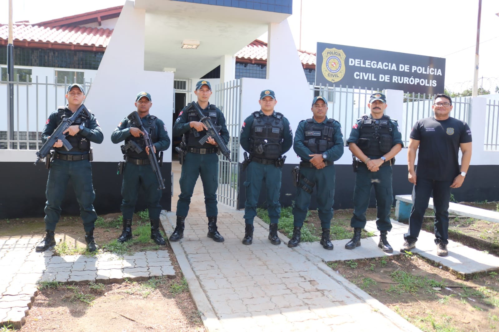 Um encontro na Delegacia de Polícia Civil de Rurópolis, sudoeste do Pará, nesta terça (14) reuniu o superintendente de Polícia Civil, delegado Vicente Gomes, o delegado Ariosnaldo Vital Filho e comandante da 17ª CIPM, Major Manoel Vieira e várias guarnições policiais, para discutir assuntos relacionados à segurança pública e estratégias integradas para o combate a criminalidade na região ao longo do ano de 2025.